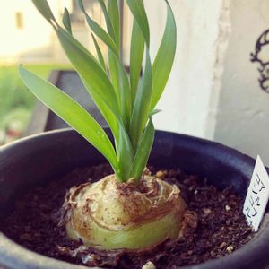 もっとクルクルして欲しいので、玄関前に移動しよう🤔 球根が増えてて新芽が5カ所から😊💕可愛ゆさたまらん💞 来年の株分けの時はもう少しだけ球根部分が見えるようにしてみようかなぁ😊