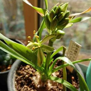 アルブカ コンコルディアナ ‘17.秋~ ’18.1月の姿 本来は縦トルネードみたい 窓辺に置いていたら球根がブヨってきたから外に出すと締まってきた^^ 子は球根がカサカサになったけど、大丈夫かな? 成長が始まって葉っぱだと思っていたのが、蕾だった! 甘い香りがするらしいから楽しみ♪
