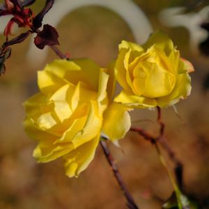 海の中道海浜公園⑤ バラ園 右下の黄色いバラの名前は『ヘンリー・フォンダ』退色しにくく花付きが良いと記載あり