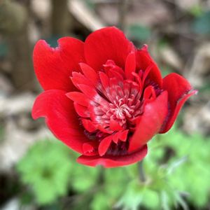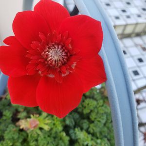 【アネモネ】 真っ赤なアネモネ❤️❤️❤️ 最近はアネモネも大きくなってるから、このアネモネを見るとこじんまりとしててアップリケみたいで可愛いです😊