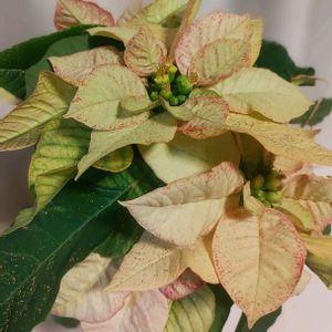 ポインセチア買いました。 もう、抗うの諦めました。 ラメ、ついてる😥😥😥 足元グラグラ😥😥😥 下葉、クルクル😥😥😥 でも、この色に抗えませんでした!