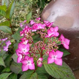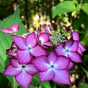 先日お迎えしたヤマアジサイ クララ。 宝石の様な綺麗な色合いに一目惚れ😍 名前からして、交配種かな? お迎えしたのはまだ咲いてない鉢で、このpicの鉢ではないのだけど… ✍️お店の方にヤマアジサイの育て方をお聞きしました。_φ(・_・ 既存のポリポットより大きな鉢や路地植えにしてしまうと、翌年は自分が生きるため、根を張る事に集中して花を咲かせない。 花が見たければポリポットより1サイズだけ上の鉢に植える。 そうすると子孫を残そうと集中するから、また花を咲かせる、との事。 だからか…‼️路地植えにしたヤマアジサイ藍姫が全然花芽をつけないのは😱