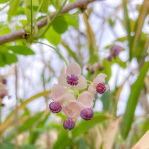 こんにちは🤗 今日は時折小雨がパラつきましたが、陽が射す時間帯もあって過ごしやすい一日でした☁️🌦️🌥️😄 今日のお花アケビ❇️💮🌸❇️ 春に我が家の庭で咲いていたアケビのお花です❇️🩷💜❇️ 可愛らしくて大好きなお花です💞
