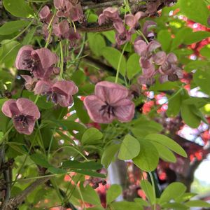 実家から一枝持って来たアケビが根付いて 春にたくさん咲くようになりました🎶 実がなったことはありません(* ᐕ)? 実が成らない種類?雌雄があるのかな? 花だけで可愛いので👌🏻です( ¯﹀¯ )
