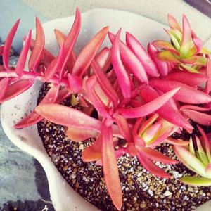 おはようございます🥵 葉挿しっ子(8)です💦 クラッスラ属 ⭐️火祭り(421) Crassule capitella "Camp Fire"❗️ *Crassule americana "Flama"とするサイトもあります❓ 別名"キャンプ ファイヤー"等。 前回紹介時行方不明にて未紹介です😅 葉は細長く柔らかくて先は少し丸い❗️🤗 ⭐️赤鬼城(84) Crassule fusca❗️ 別名"赤幻城"等。 ブリリアントレッドの"火祭り"を小ぶりした鉢から垂れ下がる子、葉は厚く硬い❗️🤗 沢山挿しました❗️🥰 ⭐️ヴォルケンシー(372) Crassule volkensii❗️ モリモリして来ました❗️🥰 ⭐️レモータ(74) Crassule subaphylla❗️ 白い産毛の可愛い子💕 なかなか上手く増やせません❗️😅 ガンバです❗️🤗