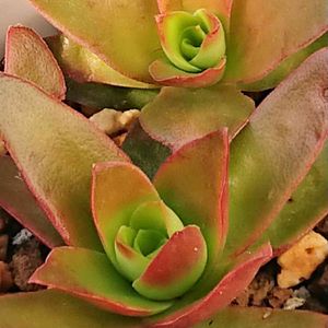 さ、咲いたかな? ダイソー産で名札がクラッスラのみだったので、我が家に来た時は花月かな?黄金花月かな?と思って、育てていたけど、時を経て、「これ、火祭り(錦)だよな?」と考え直している。 今年の梅雨で幹元が傷んでしまったから胴斬り(?)して、今は根が出てきていて一安心中。 まだ根は少なそうだから鉢から出して確認しないけど、私には分かる!! (´-`).。oO(花月?黄金花月?いや、火祭り?って分かっていないくせにね