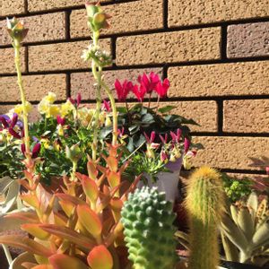 《相談です》🌵 (1)この2つのサボテンはうちに来て5年。ずっと窓辺に置いています。 どうしたら花が咲いてくれるでしょうか。 (2)去年の秋購入した火祭りさん。 こんな風になりました。この後どうすればいいか教えてください。 寒くなったので今は窓辺に置いています。 よろしくお願いします🙇♀️