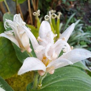 のっぽさんの白花ホトトギス🤍 少しずつ 咲いて来ました〜😆💕💕 お花🌸が 少ないので 何回も 登場すると 思います😆😁🤣 昨日の職場の庭にて