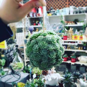店長作!巻絹イワレンゲの球体!!!店内に下げてます探せるかな!?どう育つのか楽しみです💖