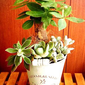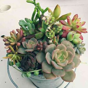ギャザリングで作った多肉植物寄せ植えです^_^ ギャザリングは数本の苗を花束にしてから植え込むので、出来上がりもふんわり華やかな感じに。 ネルソルを使う寄せ植えとはまた違う雰囲気が作れます。