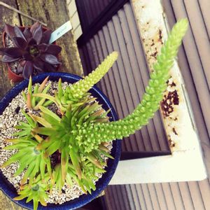 おはようございます(^^) 今年2度目のツインの花芽さんの ブラックプリンスさん(*´`) Echeveria 'Black Prince' 高く聳えたってラメリーさんを抜かしそうˆˆ