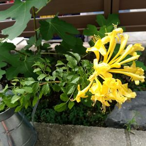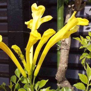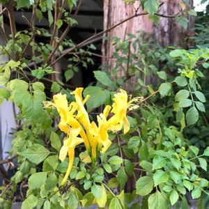 なんの蕾? 教えていただきました 黄色姫凌霄花