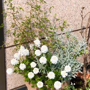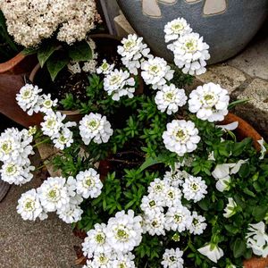 今日お花、キャンディタフト(宿根イベリス)4/30撮影 小さなお花の花束みたいで、可愛いです💕 キャンディタフト、ソフォラ、シルバースノー、寄せ植えにしてありましたが、今はそれぞれが大きくなり過ぎて、ソフォラは特に大きくなってしまい今は単独鉢で益々大きく育ってます😅