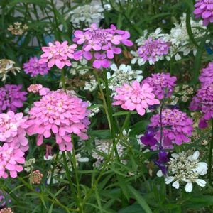 今年のボーダー花壇のキャンディタフトの様子です☺️ムラサキが多いけれど、中にはこんなにかわいいピンクも咲いています。 昨年の秋に種ができるまで残しておいた何株かを片付けながら、適当に種をふるい落としています。だから、どこに咲いてくれるかは全くわからないのです。自然にピンクとムラサキのキャンディタフトが混じり合って、いい感じ✨です。