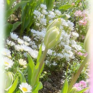 今日のお花 キャンディタフト🌸 昨年秋に植えてから春まで かわいいお花をもりもり咲かせてくれました😊 その後切り戻して 現在も葉っぱは元気✌️ これからまたかわいい白いお花を 咲かせてくれるのかな 楽しみ〜😊 単独で撮ったお写真がなくて… 中央の奥がキャンディタフトさん🌼 チューリップやネメシア、ノースポール 色々咲いてた時期のお写真です 右側のピンクのネメシアさん 現在も…というか一年中ずっと咲いてくれています このネメシアさん そういえば投稿してなかったような… また近いうちに投稿しま〜す😊
