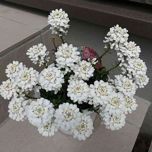 おはようございます😃 今日のお花はキャンディタフト🤍 イベリスの事なんですね🧐 昨日のアルメリア、その前のサザンクロスと一緒にお迎えし寄せ植えにしておりました😄 朝日を浴びる環境に慣れた様で モリモリ元気です💪