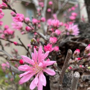 4/3㈭④ 今日は歩こう!と小雨の中歩いてきました。傘を差したり畳んだり…… 大雨でなくて良かったです。4月なのにまだダウンコート仕舞えません😂 1️⃣ハナズオウが開いてきました。よく見ると花の形は萩のような感じなんですね〜🤔 2️⃣花海棠、晴れた日にまた写したいです😃 3️⃣八重紅枝垂が公園の真ん中にありました💡いつもは行かない道を行って正解でした🌸🌸🌸😉 4️⃣オヒョウモモは終わりましたが隣に菊桃が並んでいて、コチラは咲き始めたところです🩷🩷🩷 5️⃣ミツバツツジも満開でした!!雄しべが短いの長いの合わせて10本あるので、ホンミツバツツジではなく、コバノミツバツツジ、キヨスミツバツツジなどのようです