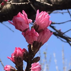 こんにちは。 今日は先日の大阪城公園から桃園のお花を。 ボリュームのある華やかな桃の花。 いろんな品種を見ることが出来ました。 ①② 源平桃 咲き分けのお花は色々でかわいい💕 若い子達も不思議やなぁ、って話してたのが微笑ましかった😊 ③ 菊桃紅 華やかな紅い桃の花。 木もまっすぐスッと枝を空に向かって伸ばす感じで、桃園の中で存在感がありました❤️ ④ ハナモモ(カンパク) 真っ白な八重のボリューミーなお花。とても綺麗でした🤍 その他にも色々な種類の桃が。 桃園の周囲には桜の木🌸 桜の足元には雪柳。 同時に見頃を迎えていました。