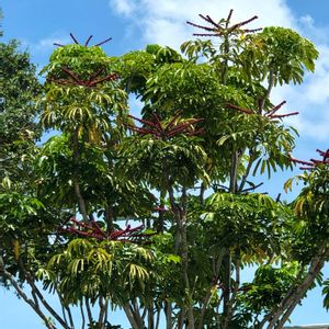オクトパスツリーまたはアンブレラツリー ウコギ科シェフレラ属の常緑中高木 花を咲かせるまで20年かかります。