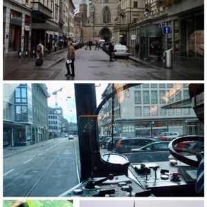 裏庭の露草がまだ咲いていました。 トラム運転席そばからの眺め。 フラウミュンスターが見えます。