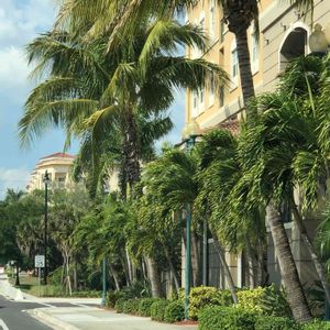 椰子の木の幹に何か見えました。 道路の植込みより