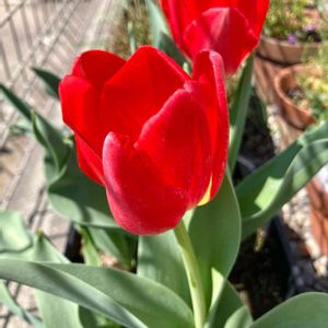秋植えチューリップが咲き始めました〜🌷 うれしい🌷 色は赤だったみたいです(何色を植えたか覚えていなかった🤣)