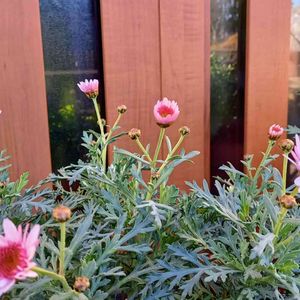おはようございます☀️ ゲブラナガトヨさんのマーガレット、あずきちゃん。 お花の色と葉っぱの深い緑のコントラストがかわいすぎる😍 暖かくなり、少しずつ花がつき始めました。 8号鉢に植えましたが、株幅は約75㎝になり、うちにあるどのマーガレットよりも大きく成長しました✨ 鉢移動が大変になり、この場所がほぼ定位置に😅