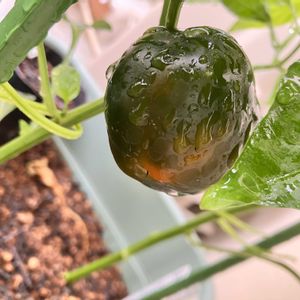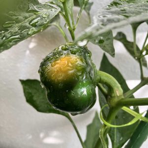 🫑ミニパプリカのイエロー。 長らくこの状態です_(:3 」∠)_ どれくらい待ったら色変わるのかな?