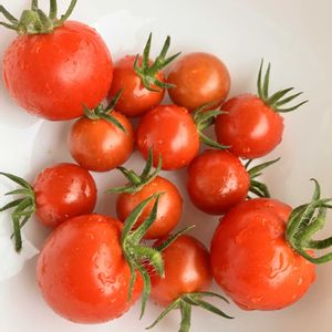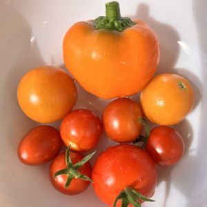 今日もトマトたくさん収穫✨ 酸っぱいのもあるし、皮も硬いけど、自分で育てた野菜はおいしいです╰(*´︶`*)╯♡