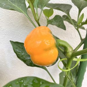 ミニパプリカのイエロー🫑 こちらもやっと色付いてきました✨ ここまで来れば、収穫まであと少しだ〜・:*+.\(( °ω° ))/.:+ …でも今日、パプリカに小さいイモムシが付いていました_:(´ཀ`」 ∠): 絶対1匹じゃないはず…注意して見ていこう(T_T)