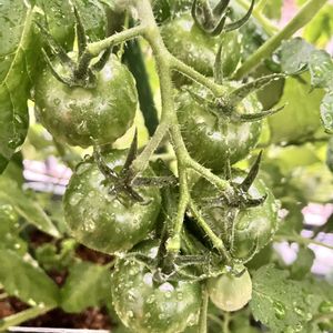 ②号トマト、千果。 こちらもそろそろ初収穫できそう╰(*´︶`*)╯♡ 今日は朝から雨ですが、最近天気が悪いと少し安心します(*´-`) もう暑すぎて晴れた日は昼間にトマトたちはしょんぼりしているので💦