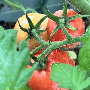 ②号トマト千果さん。 6種類育ててる中では一番小さい(°▽°)かわいい♡ 今日は3個収穫できました╰(*´︶`*)╯🍅