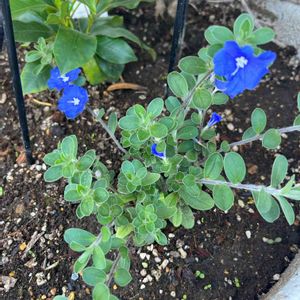 アズーロの小さかった株が、鉢一杯の花を咲かせるほどに成長。 涼しげで、門扉横に置いています。暑い中出かけて帰るたびに、ほっとする青💙 細かな花殻摘みの面倒さが玉にキズ(^^;