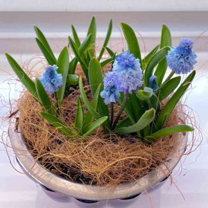 3月3日 2種寄せ植えしたムスカリ 本日満開を迎えています。 紫がかった青、明るい青 皆さんはどちらのカラーがお好きですか🤭💕