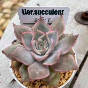 今日の気温は34度予報 朝から気温ぐんぐん 今日の一枚はアイスピンキー 薄緑と縁の黄色のエッジがいいグラデーション 葉挿し率もいいお得な子