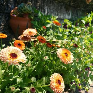 小さい花壇 種から育てた金盞花が綺麗です🙌✨️