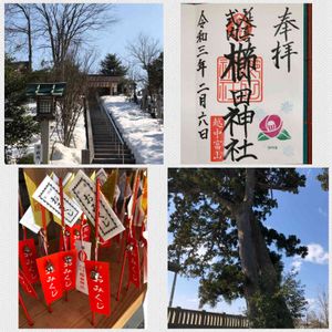 今日のいいお天気に誘われて、富山県射水市にある櫛田神社に行きました。大雪の跡形がまだ見られましたが、参拝出来て有り難かったです。 夫婦円満、家庭和合、縁結びの神として信仰を集める神社⛩ ↘️境内には、立派な夫婦杉があります。1日も早いコロナの収束と、子供たちの家庭円満をお願いしました。 ↗️御朱印は、椿でした😊 ↙️何十年振りにおみくじを頂いたところ、大吉でニッコリの私でした😊