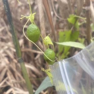 11月1日撮影 某都立公園の池にて 野草観察園の活動をしていたところ公園内の生物多様性部員を募集していることを知り、こちらでも活動させていただくことにしました。 まだまだ試用期間中なのですが、頑張っていこうと思います。 この日の活動は湿地保全作業。 池にヨシが生えすぎて、そこが乾燥して陸地になりそうなので、増えすぎたヨシを刈って湿原に戻す作業です。 ヨシは自分たちの身長を優に越え、池が見えない状態になっているとは言え、足元は泥んこのズブズブです。 部員の方たちは胴長を履いて奥へ行きますが、試用期間のわたしたちは膝までの長靴で入れるところまで。 ヨシを刈る時間より、ハマってしまった長靴を沼から出す時間の方が長かったような!?🤣 刈っているとヨシに絡みついているウリが…?これはなんでしょう? 上下にパカっと割れるような形をしています。 なんだか分からなかったので、作業中ですが先輩方にことわって写真を撮らせていただきました。濡れてもいいようにチャック付きビニール袋に入れていたのでビニール袋越しなのでぼやけています🙇手も足も泥ん泥。 調べても検索ワードが悪いのかなかなかヒットせず、ウリ科植物で画像を出し、片っ端から見ていきました。 そこでついに! ゴキヅル(合器蔓)とわかりましたよ!! ゴキヅル(合器蔓) ウリ科ゴキヅル属 合器という名付けに上手い!っと思いました。