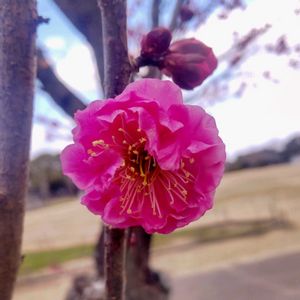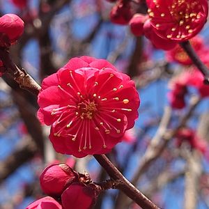 こんにちは😊✋ 紅梅🌼 いつもの ウォーキングコース🚶♀️に 咲いていました🤗 撮影した日(3月1日) 風も無く綺麗な青空💙 青空とお似合いの 紅梅です🌼 今日は朝から雨☔ 天気が良くなったら また会いに行こう😀