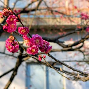 庭の紅梅が今年も咲き始めました🩷咲いたお花もぷくぷくツボミさんもどちらもかわいいです🩷