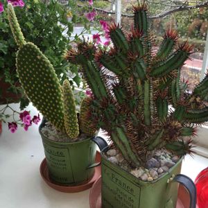 今日は生憎のお天気☂️GSの多肉愛にインスパイアされまして、我が家の古参をご紹介!17〜8年前に植物園で5センチに満たなかったのを、子供達が一個ずつ購入。トゲゾーとパタコと申します。トゲゾーの方が強面ですが、パタコヤバイです。ちょっとでも触れようものなら、ミクロのトゲがビッシリ!ヒェ〜ってなります。花は見たことないの(´・_・`)