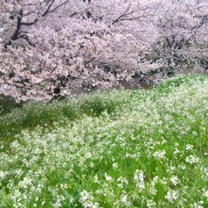 裏の川の土手の桜並木です🌸 都内なのにこれ撮った昨日はまだまだ3分咲き。むしろ手前の大根の花畑が満開御礼。 見頃は週末あたりかな。 お天気心配🌥🌂 数年前からここは桜と大根の花の2本立てです。 休日は花に埋もれて家族連れや友達同士の花見客が大いに賑わって憩います。🍻🍡🌸