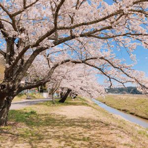 河津桜の桜並木🌸🌲🌸 青空にピンクの桜が映えます🌸 あまり人もいない穴場スポットで、静かなお花見にはもってこいの場所です☺️