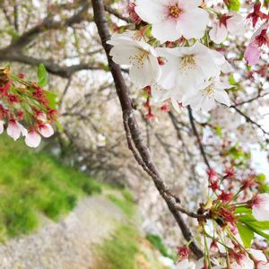 ❀ 今日のお花 ソメイヨシノ ① ❀ 昨年4/22のお花見散歩🐕🐾 川沿いの桜が満開でした🌸•*¨*•.¸¸♬︎ 今年の開花はいつかなぁ~«٩(*´ `*)۶»ワクワク💓