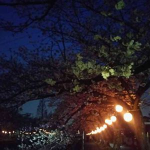 こんばんは✩⋆*॰¨̮⋆。˚ 遅くに💦ごめんなさい🙇 夜桜見に家の近くの桜並木散策に行って来ました🌸ほぼ満開🌸🌸