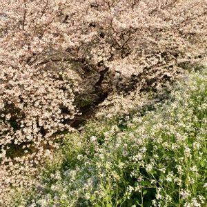 裏の多摩川土手の桜並木です。おとといのpic🤳🌸これで9分咲きくらいかな。 たくさんの桜の木と土手に咲くハマダイコンの花畑の競演😚💕 毎年とても楽しみにしているお花見です🌸🌸🌸🌸🌸 ここもこの辺では隠れた桜の名所だと思う。大勢の近隣の住民の方々が思い思いに賑やかにお花見楽しんでいて、とても幸せな光景です😊🎶