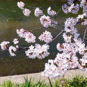 川沿いの桜🌸 風がちょっぴり強かった今日は 花吹雪と花筏も綺麗でした〜♡(*´꒳`*)
