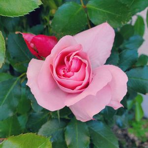 ローゼンドルフシュパリースホープ 開き切る前、美しい♪ 葉もつやつやできれい。病気にも強いとのこと。黒点病、全くないです♪ それにしてもこのバラの名前、なかなか覚えられません、、、