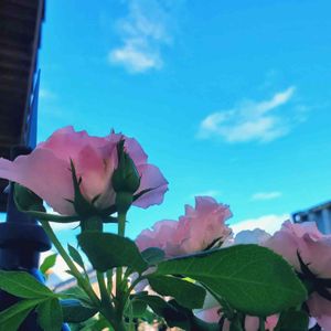 今日の夕方のお庭です 明日は雨の一日に・・・ 雨に当てたくない鉢植えを片付けて来ました❗ 暗くなるのが急に早くなったような感じです😅💦 なんだか寂しいので、ピンクの薔薇を写してきました🌹 元気出るかな~?💠
