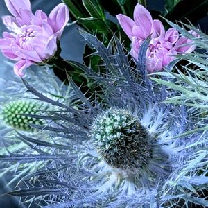 💓 素敵なお花 💓 1⃣初めて出会ったお花𓂃𓂂ꕤ*.゚ トゲトゲみたいですがそんなに痛くないです メタリックなシルバーブルー💙のお色が魅惑的✨ ピンクのマムともベストマッチ🎀💕💓💗 2️⃣3️⃣エキナセア ルージュノワール たくさんの蕾も控えてます(,,>᎑<,,)ウフフ 蕾の丸まった花びらも綺麗°・*:.。.☆ 4️⃣紫陽花ダンスパーティーちゃん❤︎なんだか少しお色が違う子がお目見え🧡 暑すぎて変化したのかな( '-'* )? 他のピンク色は皆項垂れているのにこの子はシャキッとしています💪